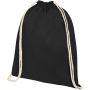Húzózsinórral zárható nyitott fő rekesz. 100 g/m2 pamut. Emblémázás: Szitanyomás