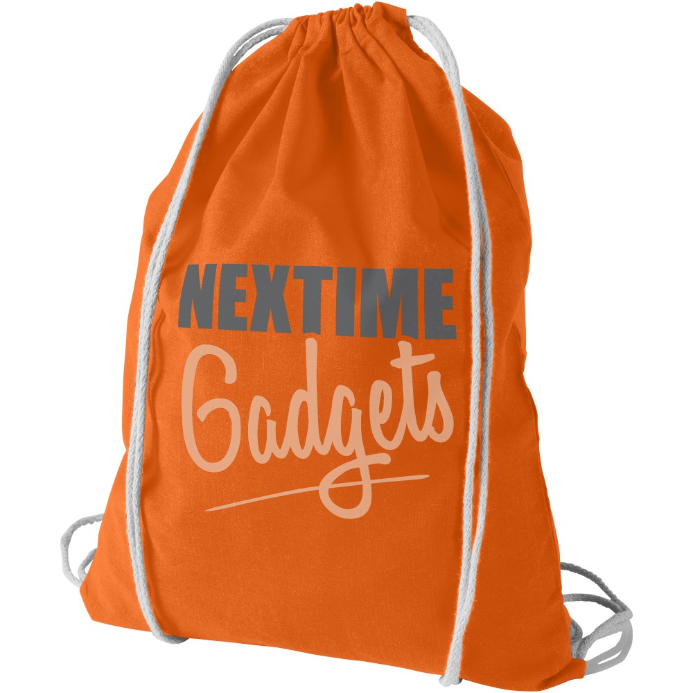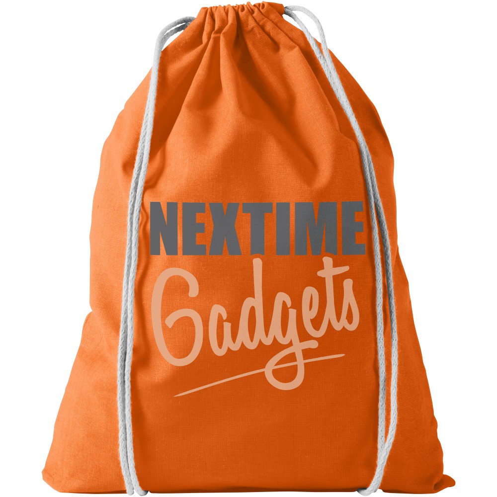 Húzózsinórral zárható nyitott fő rekesz. 100 g/m2 pamut. Emblémázás: Szitanyomás