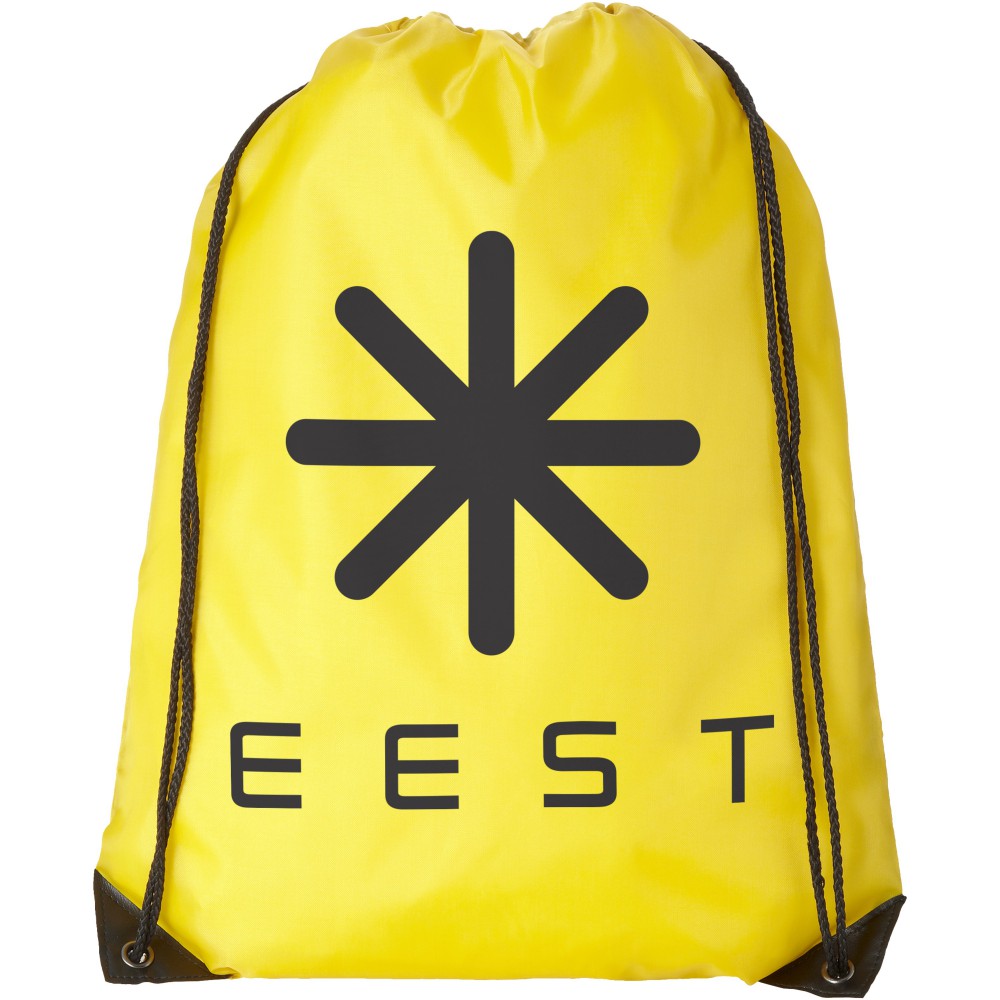 Húzózsinórral zárható nagy fő rekesz. A húzózsinór kialakítása miatt vállon vagy hátizsákként is használható. 210D Polyester. Emblémázás: Szublimálás, Szitanyomás