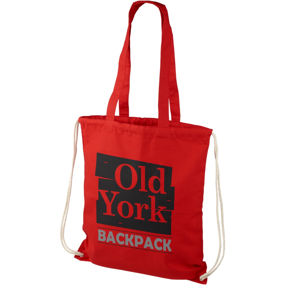 Eliza vászontáska, mely hátizsákként is használható. 240 g/m2 pamut táska húzózsinórral és vállpánttal. Vállpánt hossza: 31 cm. Űrtartalom: 1.5 L. Maximum 5 kg súlyig teherbíró. Emblémázás: Szitanyomás