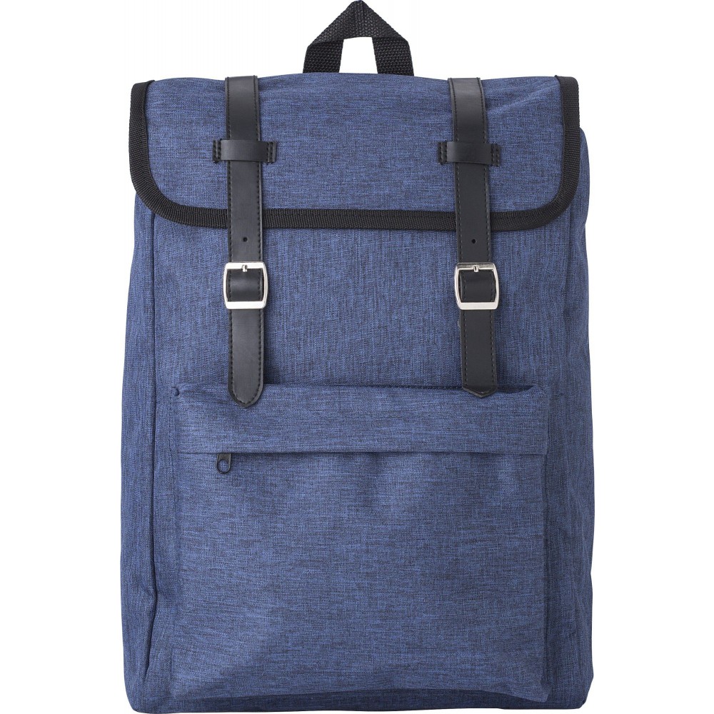 Hátizsák cipzáros első zsebbel, 2 fém csattal, párnázott háttal és párnázott, állítható vállpánttal. 300D + 210D poliészter. Emblémázás: Szitanyomás