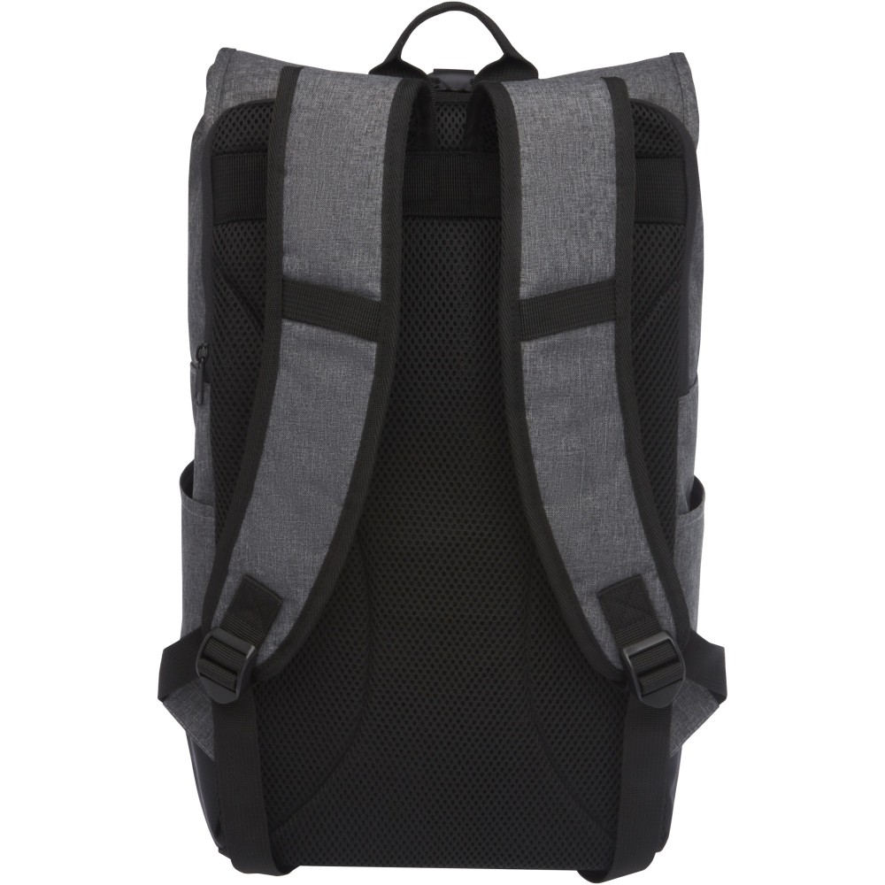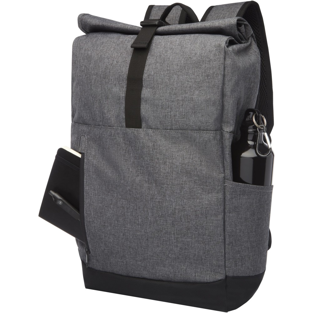 15,6 -es laptop hátizsák párnázott laptoptartóval párnázott, állítható vállpántokkal, cipzáras fő rekesszel, feltekerhető zárással, 2 füllel és elülső cipzáras zsebbel. Poliészter, 300D poliészter. Emblémázás: Szitanyomás