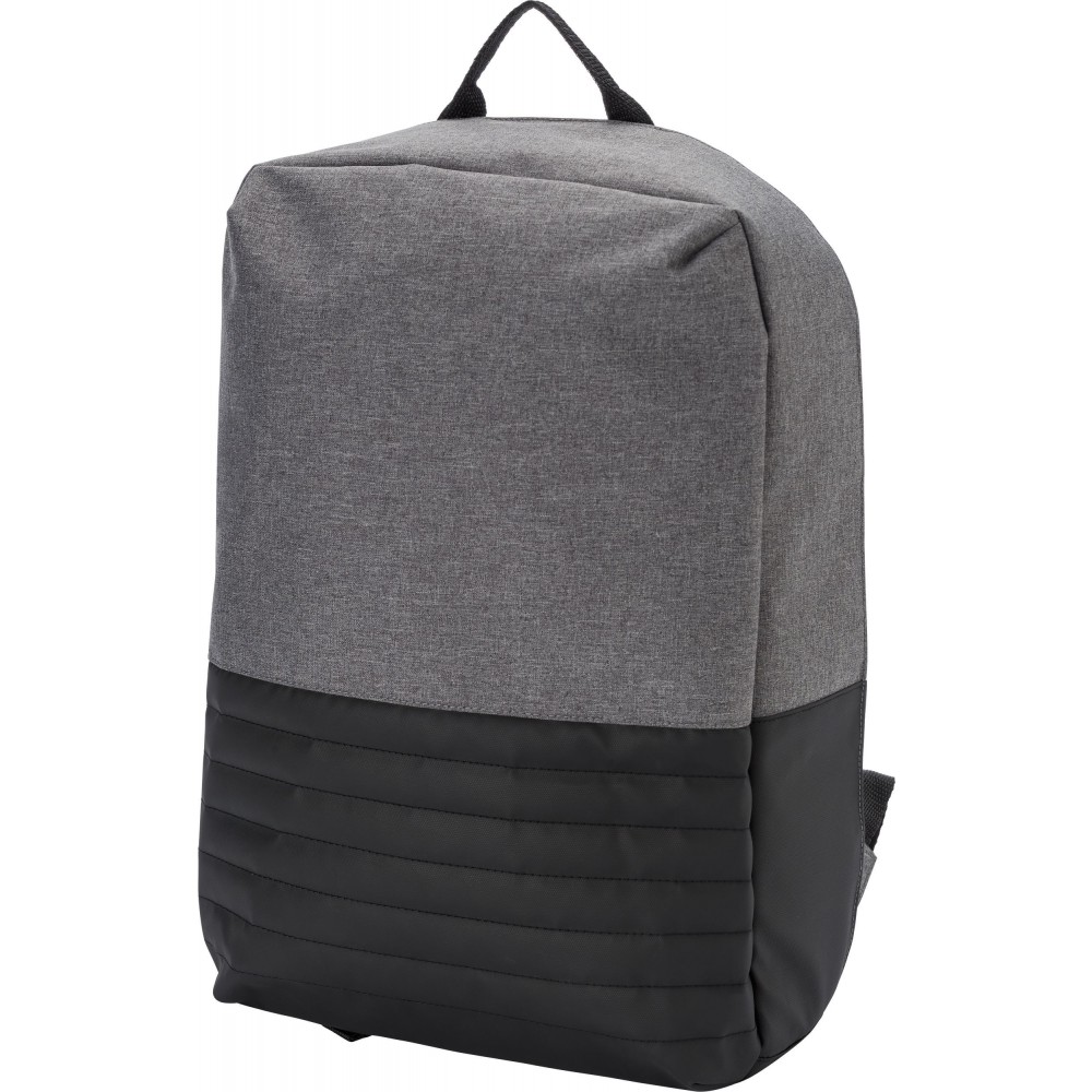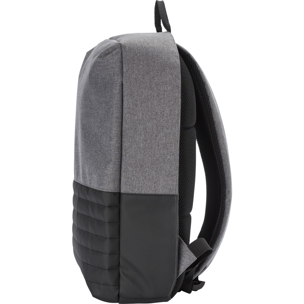 Kéttónusú lopásgátló hátizsák állítható és párnázott vállpánttal, párnázott hátkialakítással. Egy nagy fő rekesz cipzárral és párnázott laptop rekesszel (15"-es laptop számára). Külső USB-port, belül kábel. 600D + 300D PVC. Emblémázás: Szitanyomás