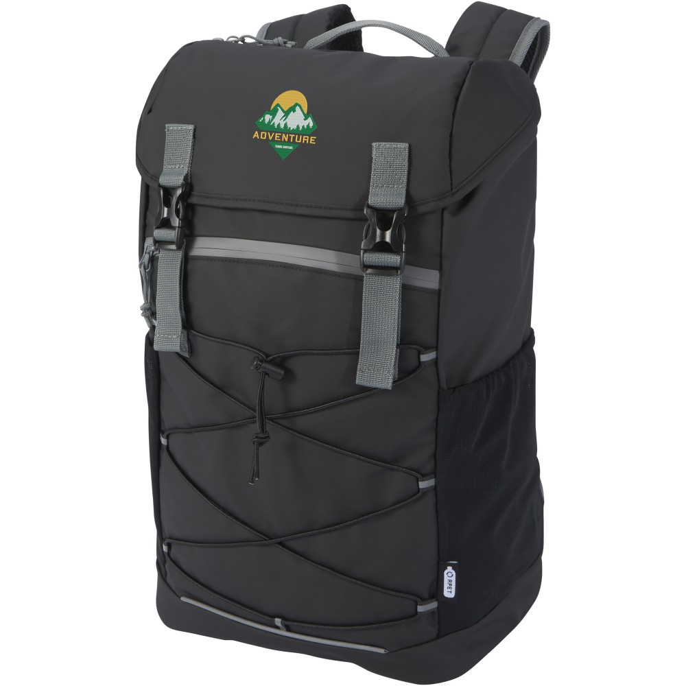 Vízálló laptop hátizsák GRS tanúsítvánnyal rendelkező újrahasznosított anyagokból, beleértve a cipzárakat is. Tágas, 15,6 -os laptoprekesszel rendelkezik, zsinórral és állítható csatokkal, hogy maximalizálja a tárolóhelyet a fedlap alatt. Ez a hátizsák több zsebbel rendelkezik, köztük egy cipzáras elülső zsebbel, rugalmas húzózsinórral a tároláshoz és rendszerezéshez, valamint fényvisszaverő csíkokkal a láthatóság érdekében. A formázott és párnázott hátlapnak és az állítható mellkaspántnak köszönhetően még teljes terhelés esetén is kényelmesen hordozható. A GRS újrahasznosított anyagai közé tartozik a főszövet, a bélés, a hevederek és a cipzárak. Űrtartalom: 23 liter. PVC-mentes. Emblémázás: Szitanyomás