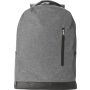 600D RPET poliészter lopásgátló hátizsák hátul gurulós bőröndre húzható pánttal. Elöl egy kis cipzáros zseb. Mindkét oldalán palacktartó zseb. Belül egy nagy rekesz tépőzáras laptop zsebbel. Alkalmas nagyméretű laptopokhoz. Állítható vállpántok. Alul egy kis bélelt rész újrahasznosított autógumiból. Emblémázás: Szitanyomás