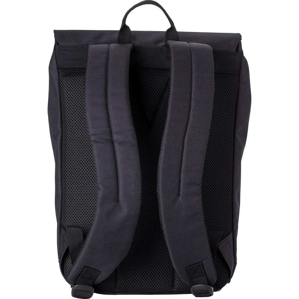Kéttónusú poliészter (600D) hátizsák PU címkével a ráhajtón. Egy cipzáras zseb az elülső oldalon. Egy nagy rekesz a felső oldalon fém záródással. Laptoprekesz, amely egy 15 colos laptop számára alkalmas. A hátizsák megerősített hátlappal és állítható vállpántokkal rendelkezik. Emblémázás: Szitanyomás