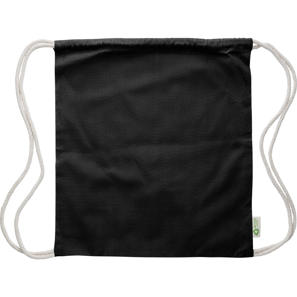 Újrahasznosított pamut tornazsák megerősített sarkokkal. 100%-ban újrahasznosított pamutból készült. 120 g/m2 Emblémázás: Szitanyomás