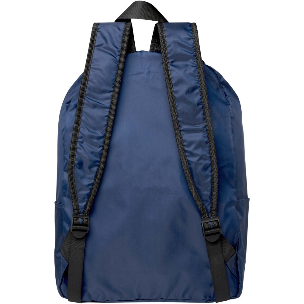 Ez a könnyű, mégis strapabíró hátizsák a kényelem és praktikusság jegyében készült, és könnyedén egy kompakt tasakba hajtható, amelyen szövettáska hurok található a kényelmes hordozás érdekében - ideális utazók, túrázók és a mindennapi használat számára. Cipzáras főrekesszel, cipzáras elülső zsebbel, két oldalsó zsebbel és állítható vállpántokkal rendelkezik. PVC-mentes újrahasznosított poliészterből készült. Űrtartalma: 15 liter. Emblémázás: Szitanyomás