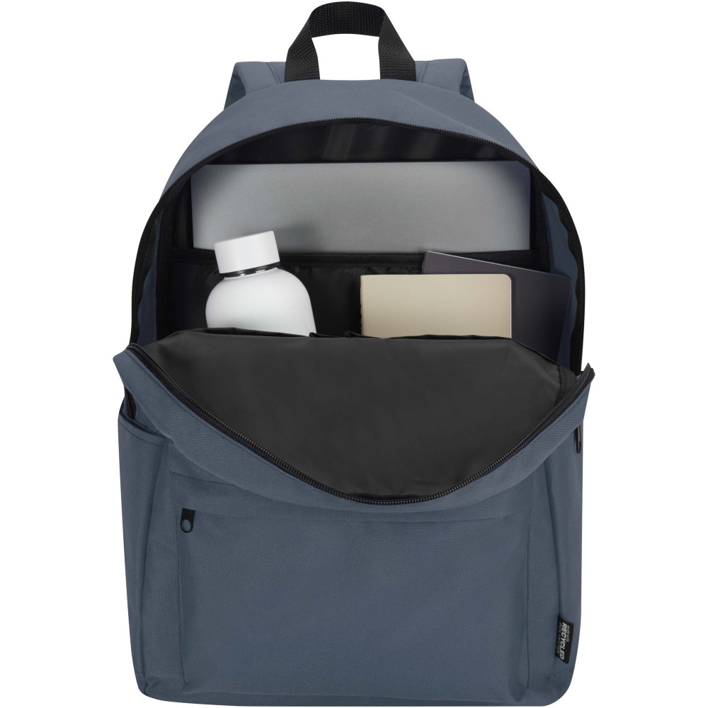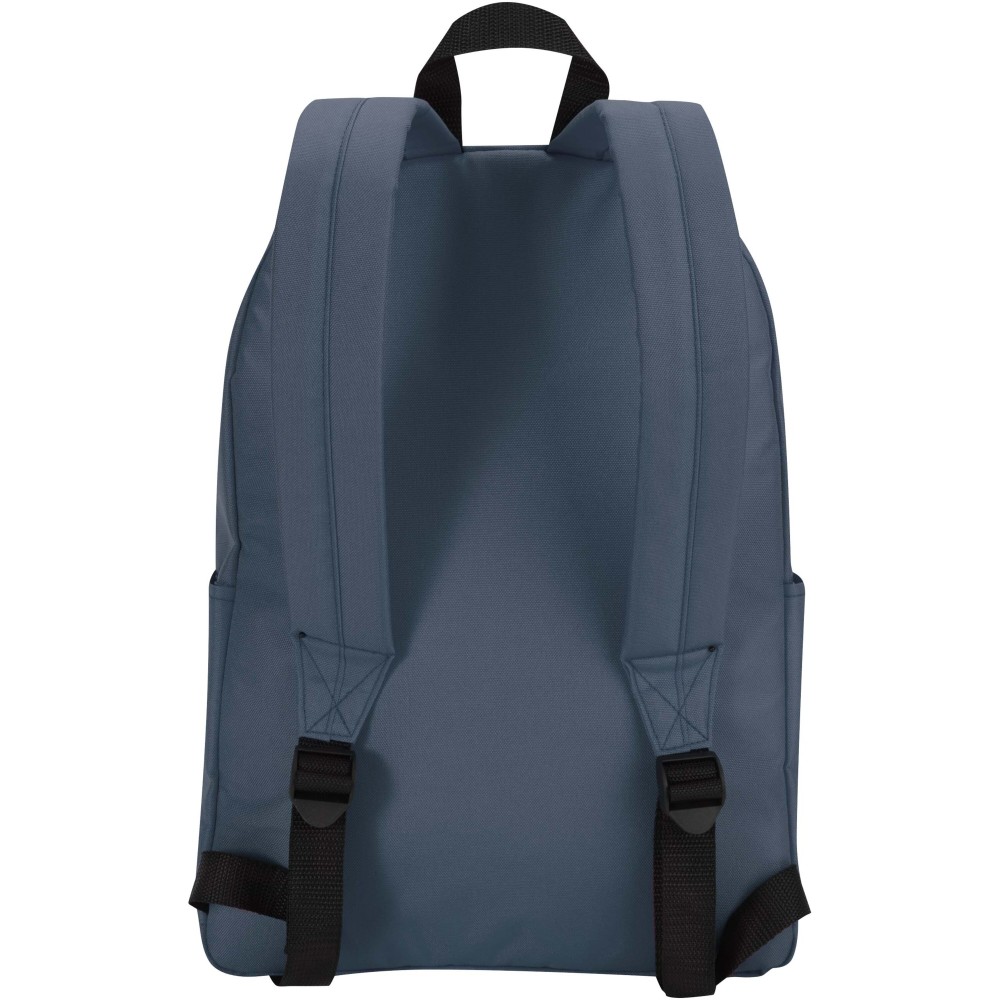 Vízlepergető, GRS tanúsítvánnyal rendelkező, újrahasznosított poliészterből készült a Byron városi laptop hátizsák, amely ideális választás munkába, iskolába vagy városi kiruccanásokra. Karcsú kialakítása 16 literes kapacitást kínál, valamint külön párnázott rekeszt akár 14" laptop számára. Belsejében praktikus rendszerező zsebek segítenek rendben tartani a felszerelést, míg két oldalsó zseb és egy cipzáras elülső zseb biztosít gyors hozzáférést a legfontosabb dolgokhoz. Akár ingázol, akár a várost fedezed fel, ez a kényelmes laptop hátizsák minden lépésnél stílust, tartósságot és funkcionalitást nyújt. Emblémázás: Szitanyomás