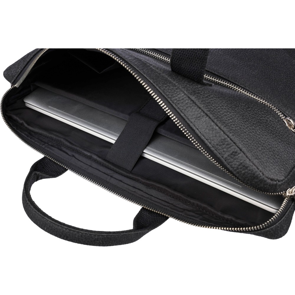Laptoptáska paradicsom felhasználásával (15 inch), cipzáras rekeszekkel az elején és a tetején, valamint párnázott laptop zsebbel, tépőzáras záródással. Belsejében több kisebb zseb található. Állítható vállpántokkal rendelkezik. Anyagösszetétel: 50% pamut, 30% paradicsom, 20% biopolimer. Emblémázás: Szitanyomás