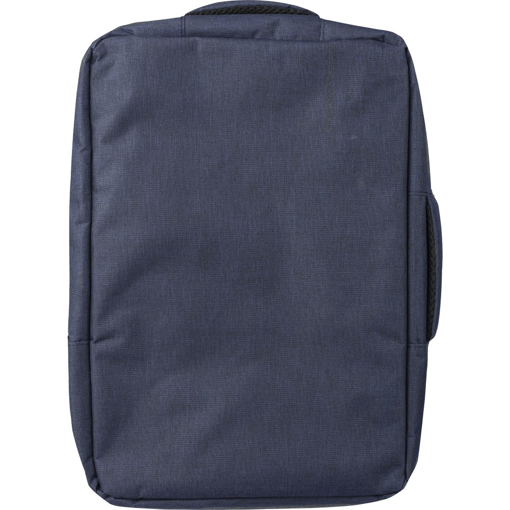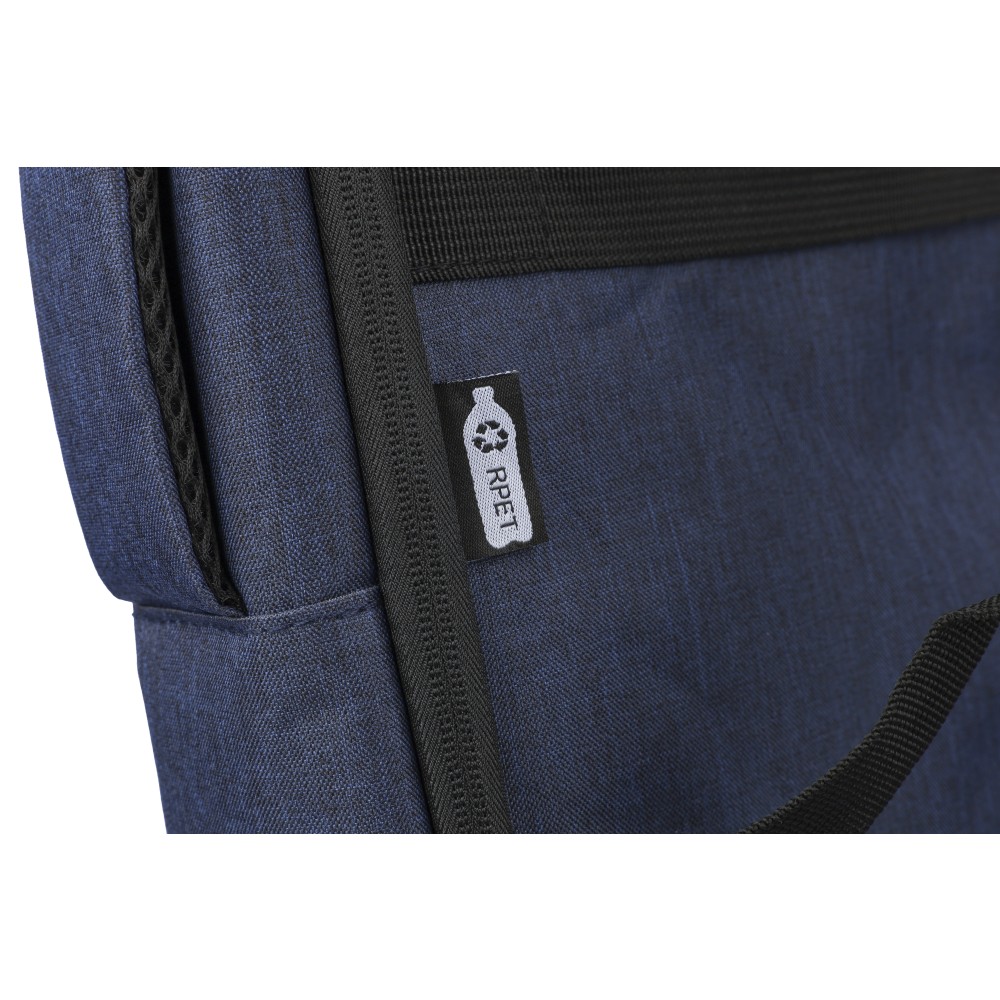 Laptophátizsák 300D rPET poliészter anyagból, 210D rPET béléssel. Egy nagy cipzáras rekesszel, számtalan belső zsebbel, tépőzáras laptoptartó zsebbel 15"-es laptop számára és 12 literes űrtartalommal. Megerősített, szellőző hátrésszel, állítható vállpánttal, oldalsó hordozófüllel és gurulóstáskára való felhelyezésre alkalmas pánttal. Teherbíró képesség: 10 kg. Emblémázás: Szitanyomás