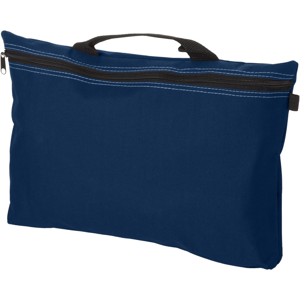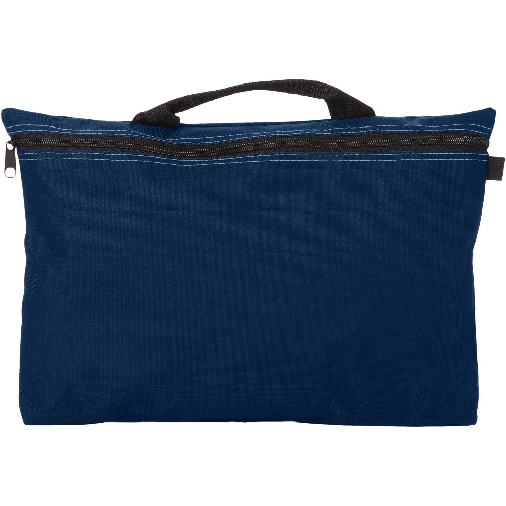 Konferenciatáska erős füllel, cipzárral zárható, tolltartó hurkokkal a táska belsejében és kívül is. Ideális A4-es méretű kiadványokhoz. 600D poliészter. Emblémázás: Szitanyomás