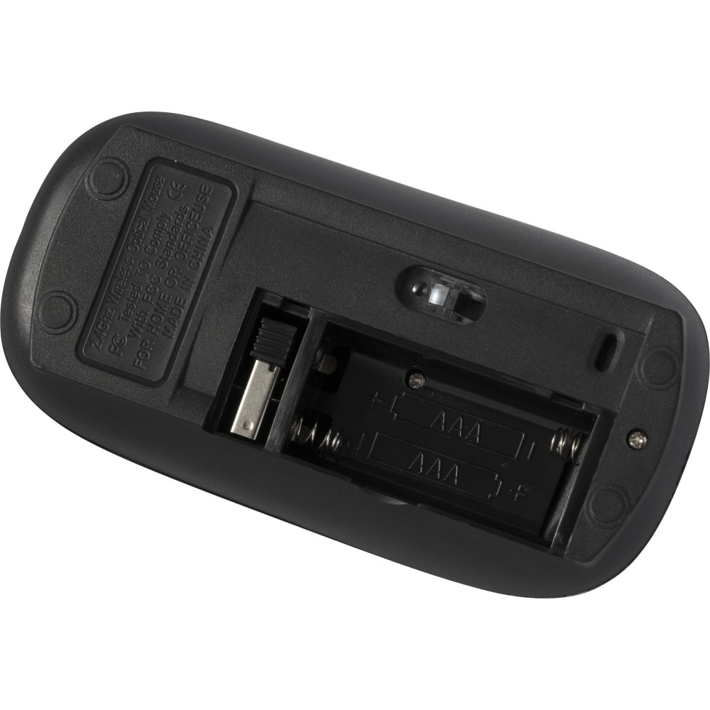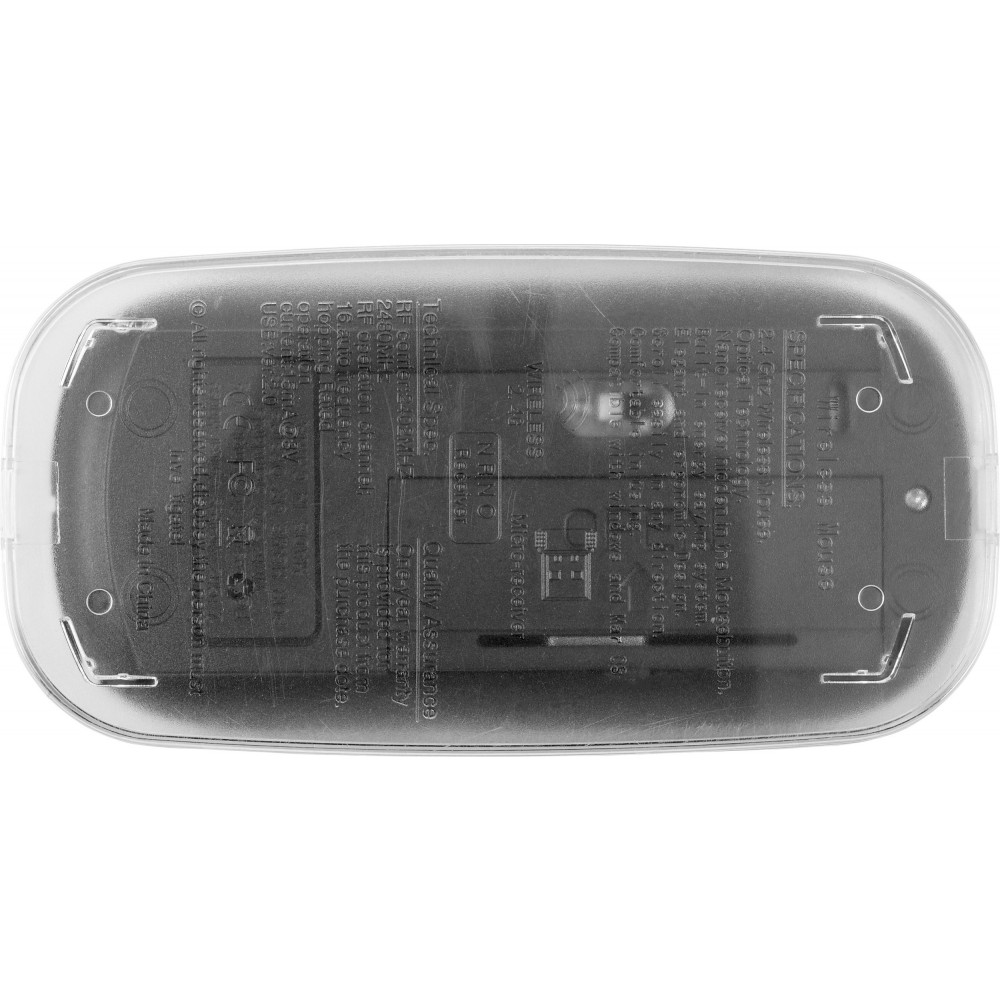 Vezeték nélküli optikai egér, 2,4Ghz. Energiatakarékos egér rejtett Nano vevőegységgel és görgetővel. Az elemet tartalmazza. ABS műanyag. Emblémázás: Tamponnyomás