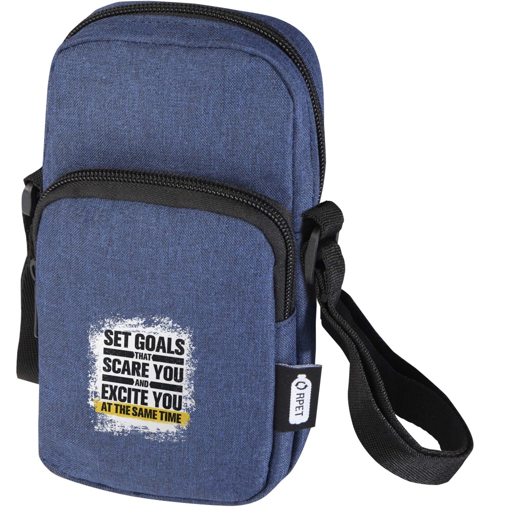 A Ross GRS tanúsítvánnyal rendelkező újrahasznosított telefontok biztonságban tartja telefonját, és praktikus extra tárolóhelyet biztosít a cipzáras elülső zsebben kisebb kiegészítők számára. Állítható pántjának köszönhetően (akár 140 cm-ig) kényelmes és stílusos útitárs a modern, digitalizált világban. Emblémázás: Szitanyomás