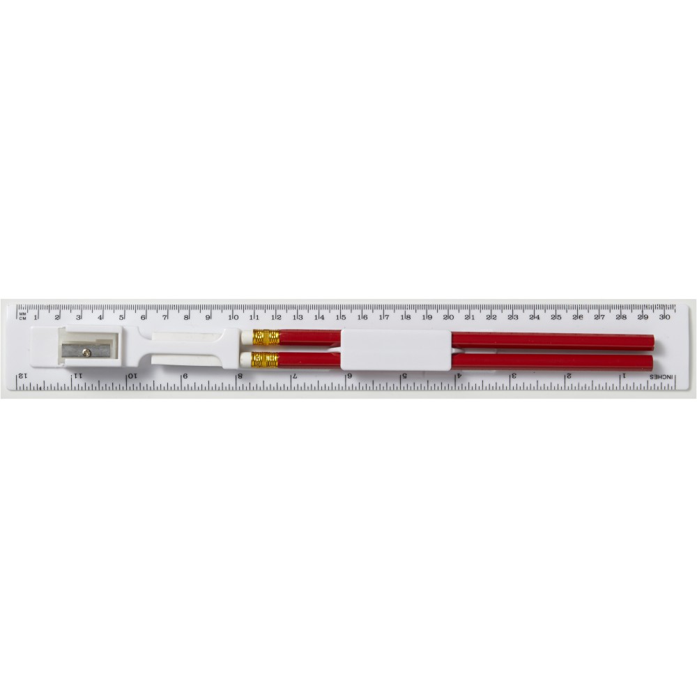 30 cm-es vonalzó és írószerkészlet, fehér (2959-02): 1 db