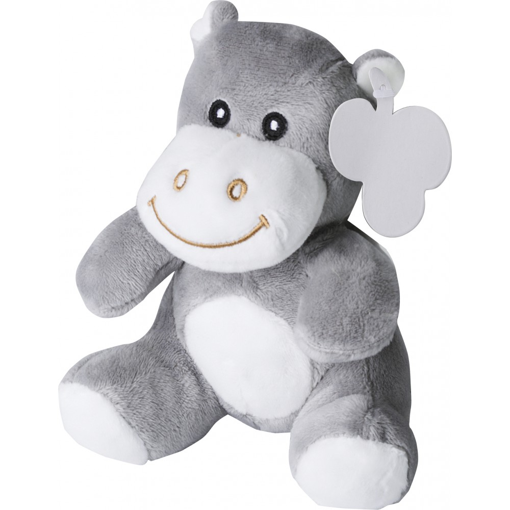 Plüss víziló hímzett szemekkel, fülében emblémázható címkével. Emblémázás: Tamponnyomás