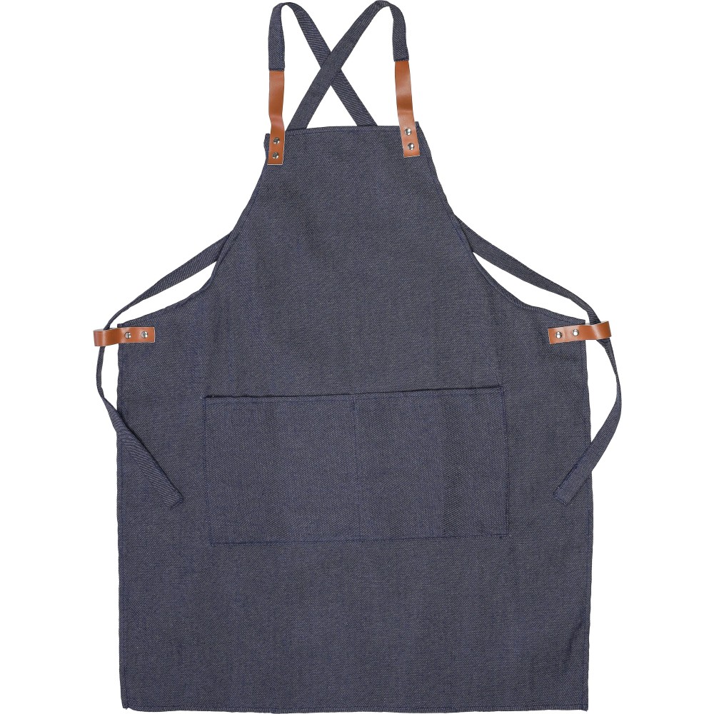 Farmerkötény vállpántokkal és két elülső zsebbel. A farmer 65% poliészterből és 35% pamutból készült. Ez a kötény nem rendelkezik nyakpánttal, csak vállpántokkal. A farmer színtartóssága 2-3 szint. Egyenként barna karton ajándékdobozba csomagolva. Anyaga: 280 g/m2. Emblémázás: Hímzés, Szitanyomás