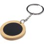 Kulcstartó gumis felületű, rozsdamentes acél gravírozólappal. A gravírozás utáni szín fényes króm. Egyedi csomagolásban, barna kraftpapír tokban. Anyaga: bambusz. Emblémázás: Tamponnyomás