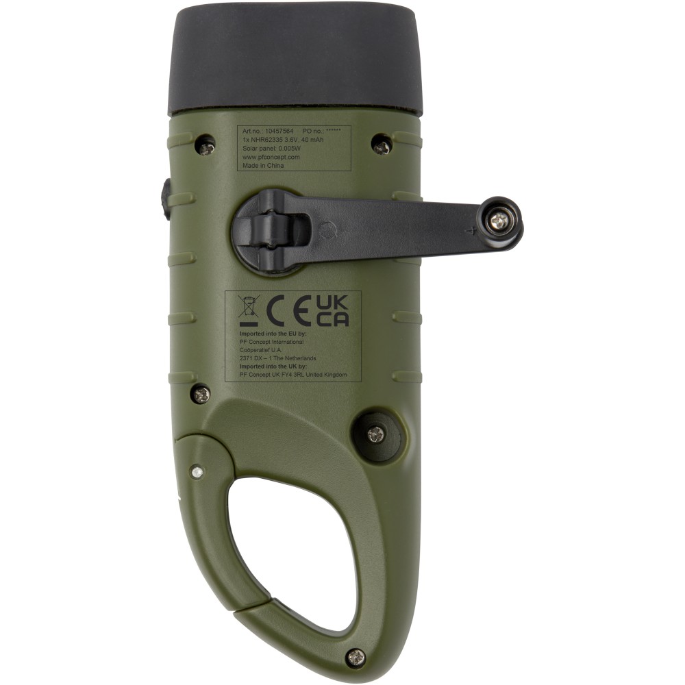 Eleged van abból, hogy akkor fogy el az energia, amikor a legnagyobb szükséged van rá? Mondj búcsút a frusztráló pillanatoknak innovatív, problémamentes Helios világítási megoldásunkkal. Ez az újrahasznosított műanyag napelemes, dinamós zseblámpa beépített karabinerrel rendelkezik, amely lehetővé teszi a könnyű rögzítést a hátizsákokhoz, övekhez vagy felszerelésekhez, így nélkülözhetetlen kempingezéshez vagy túrázáshoz. Mindössze 1 perc kézi forgatással 8 percnyi fényt élvezhetsz. Amikor pedig süt a nap, a napelem hasznosítja az nap energiáját, így biztosítva, hogy a fényforrás mindig készen álljon. 3 LED lámpával és 10 000 mcd fényerővel rendelkezik. Akkumulátor típusa: 40 mAh Ni-Mh, 3,6 V. Fenntartható forrásból származó STAC díszdobozba csomagolva. Újrahasznosított ABS műanyag. Csomagolás: FSC Mix Credit P5.1 CU-COC-877277. Emblémázás: Tamponnyomás