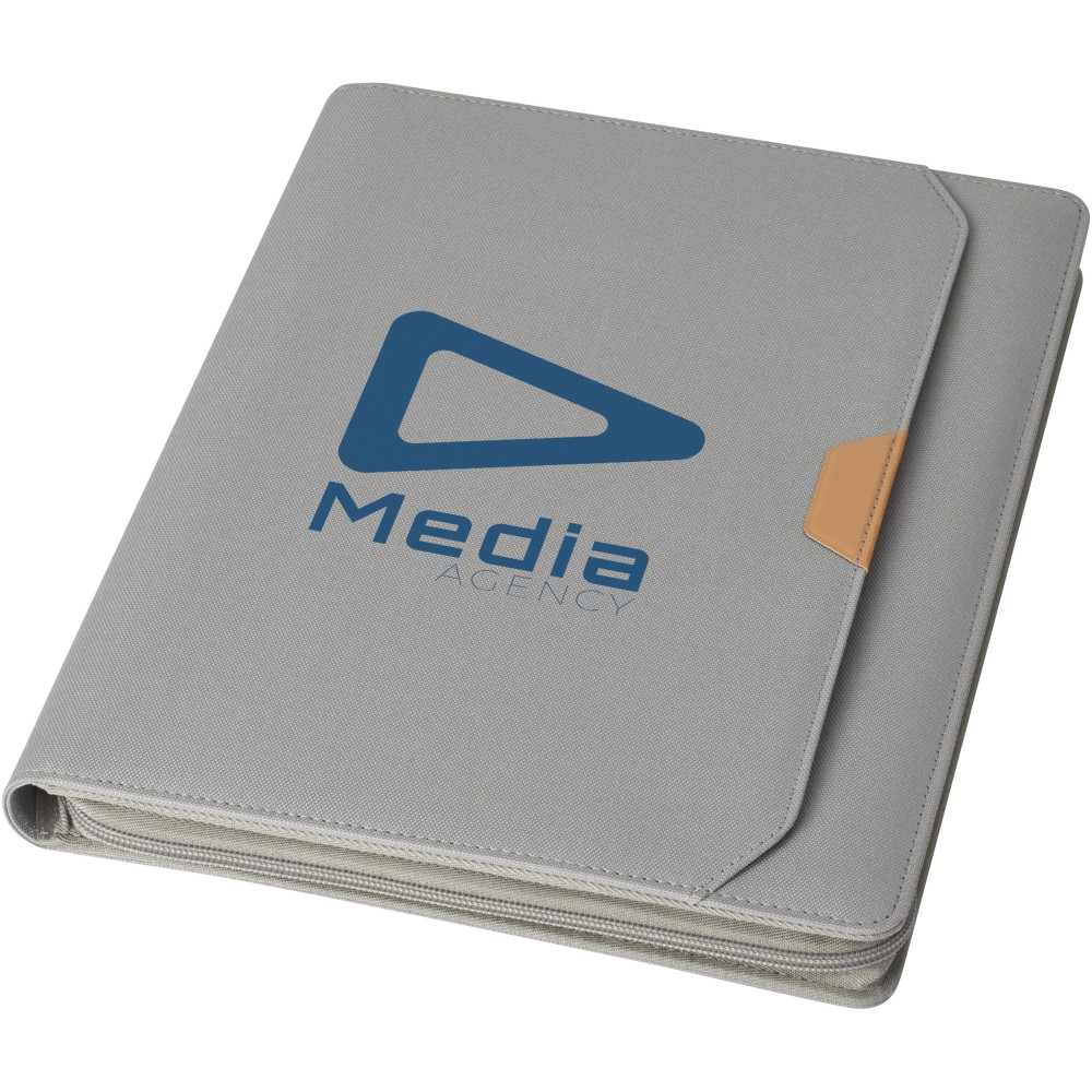 Az RCS tanúsítvánnyal rendelkező Nomumi portfólió részben újrahasznosított poliészterből készül, így ez a portfólió fenntarthatóbb választás, mivel segít csökkenteni az új nyersanyag felhasználást. Cipzáras záródással, tollhurokkal, harmonikazsebbel és 20 fehér vonalas lappal rendelkezik, amelyek 70 g/m2 -es, fenntartható forrásból származó, újrahasznosított papírból készültek. A képeken látható toll és egyéb kiegészítők nem tartoznak a termékhez. Emblémázás: Tamponnyomás