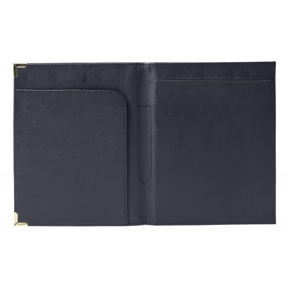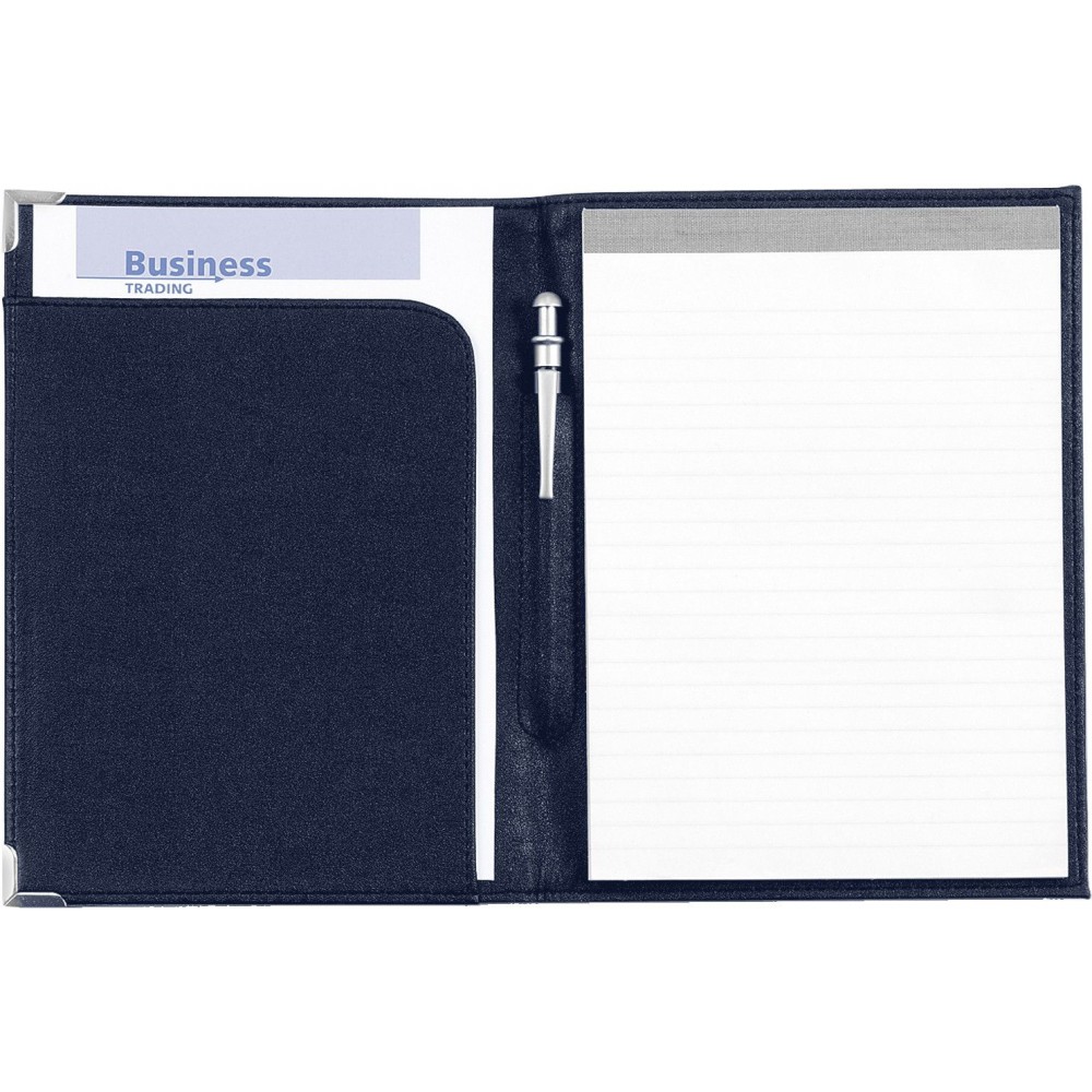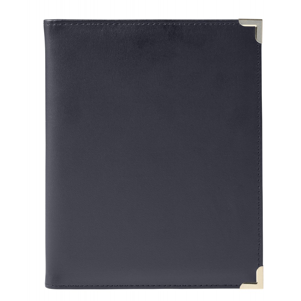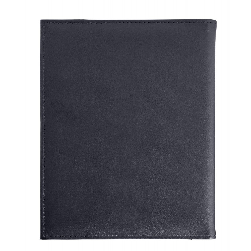 A5-ös PU mappa fém sarokkal. Jegyzettömböt nem tartalmaz. 30 vagy 50 lapos jegyzettömb fehér lapokkal a 23023 vagy 23026 cikkszámon külön rendelhető. A fekete mappa arany színű sarkokkal, a kék mappa ezüst színű sarkokkal érkezik. Emblémázás: Szitanyomás, Tamponnyomás