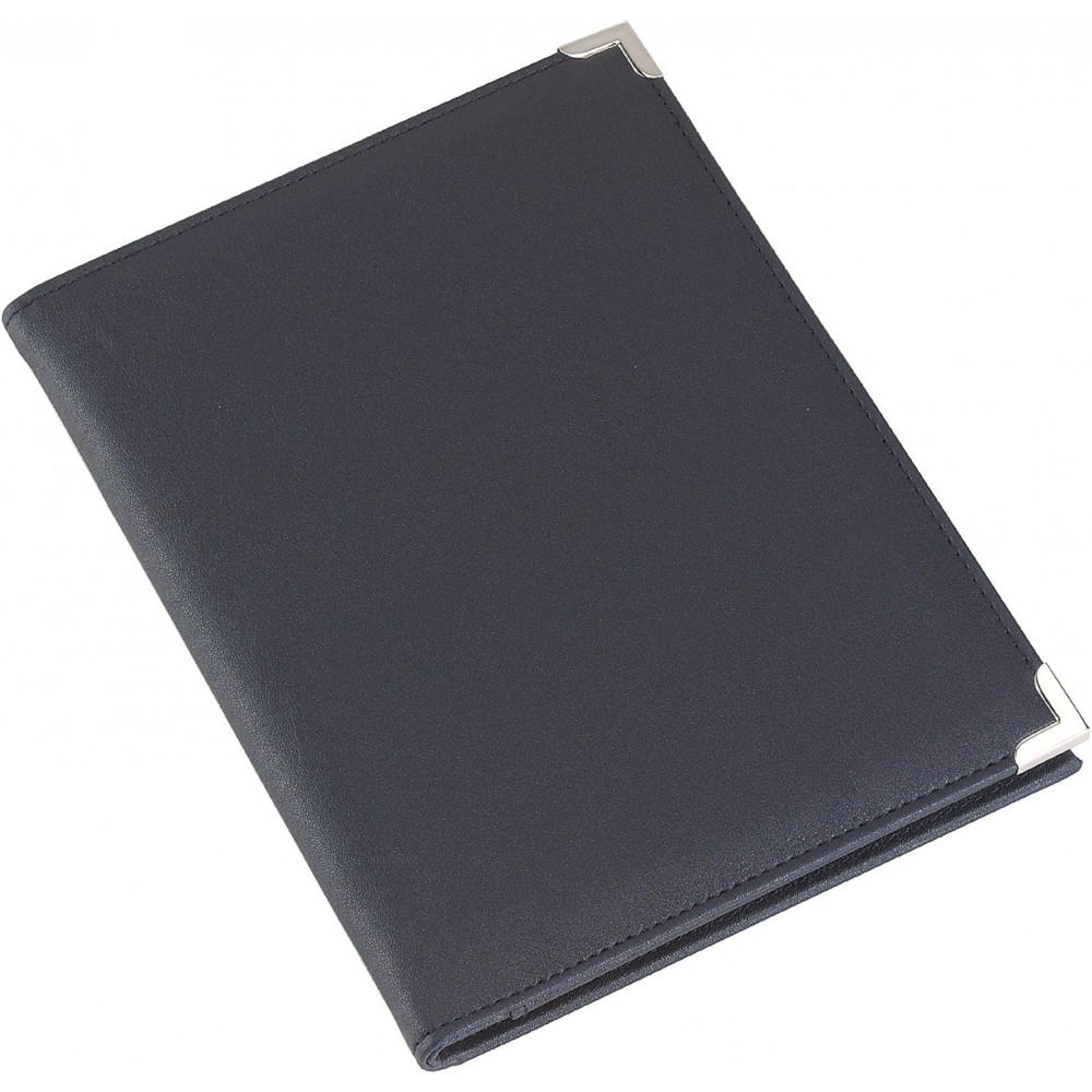 A5-ös műbőr mappa fém sarokkal, kék/ezüst