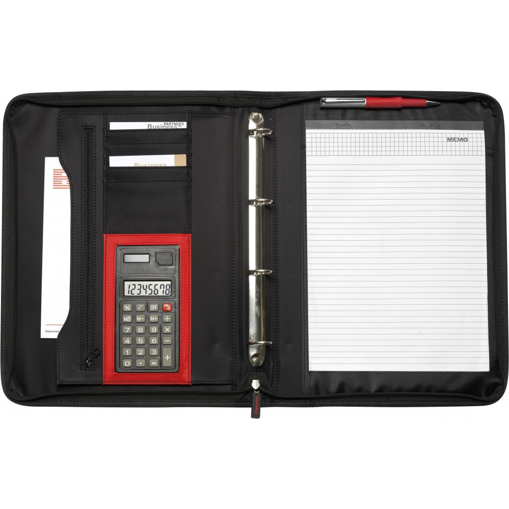 A4-es cipzáras, gyűrűs mappa számológéppel, fekete