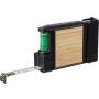 Mérőszalag bambusz részletekkel és beépített vízmértékkel. 3 méteres, 12 mm széles fém szalaggal. Tartalmaz 5 bitfejet, így csavarhúzóként is használható. MID tanúsítvánnyal rendelkezik. Egyenként barna kartondobozba csomagolva. Anyaga: ABS. Emblémázás: Gravírozás, Tamponnyomás