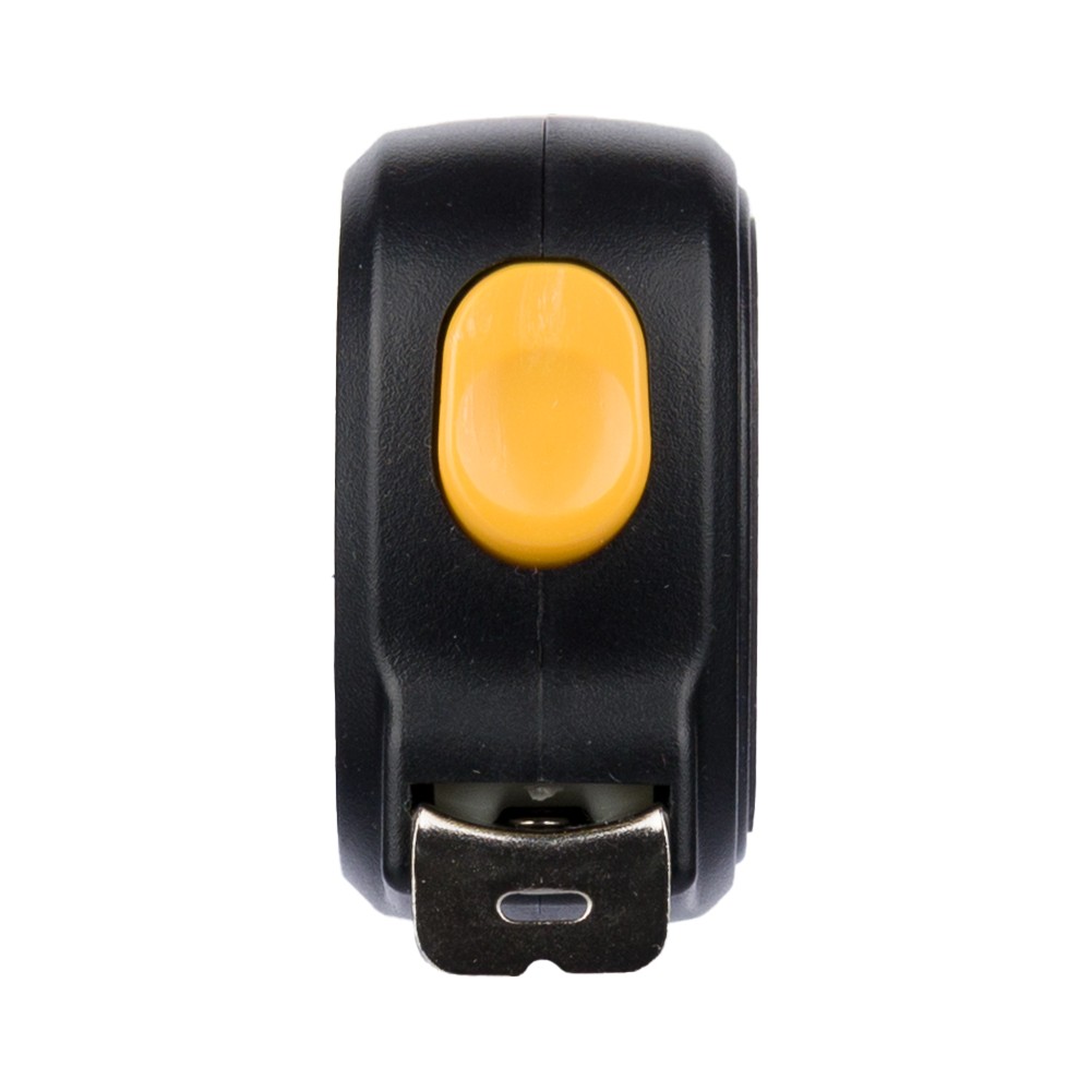 ABS műanyagból készült mérőszalag mágneses oldallal, 3 m hosszúságú és 16 mm szélességű fém szalaggal, centiméter- és inch-beosztással. Felül elhelyezett nyomógomb a rögzítéshez/kioldáshoz, valamint poliészter csuklópánt. Egyenként csomagolva illusztrációval ellátott barna kartondobozba.