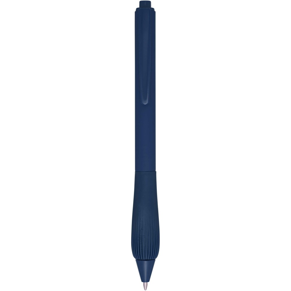 Újrahasznosított műanyag golyóstoll gumírozott tolltesttel és TPR anyagból készült fogórésszel. Fekete tollbetéttel. Írási hossz: 1000 méter. Hegyméret: 1,0 mm. Emblémázás: Tamponnyomás