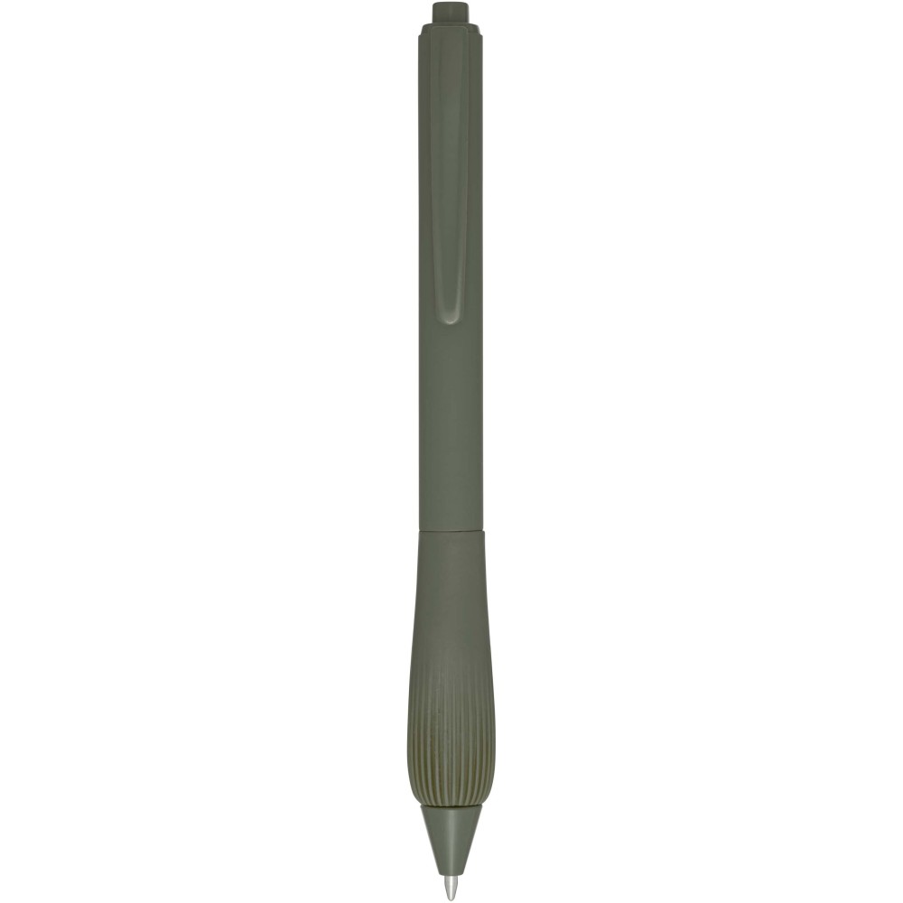 Újrahasznosított műanyag golyóstoll gumírozott tolltesttel és TPR anyagból készült fogórésszel. Fekete tollbetéttel. Írási hossz: 1000 méter. Hegyméret: 1,0 mm. Emblémázás: Tamponnyomás