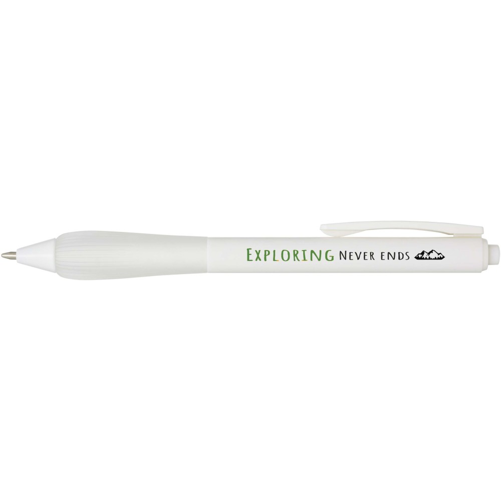 Újrahasznosított műanyag golyóstoll gumírozott tolltesttel és TPR anyagból készült fogórésszel. Kék tollbetéttel. Írási hossz: 1000 méter. Hegyméret: 1,0 mm. Emblémázás: Tamponnyomás