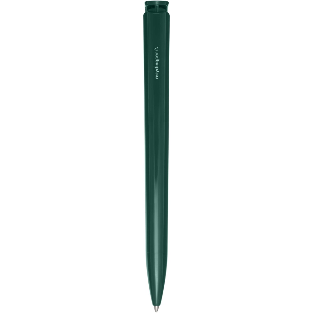 Golyóstoll, amelynek teste és klipsze újrahasznosított műanyagból készült, a hegy pedig rozsdamentes acélból. Fekete tollbetéttel. Íráshossz: 3000 méter. Hegyméret: 1,00 mm. Németországban készült. Emblémázás: Tamponnyomás