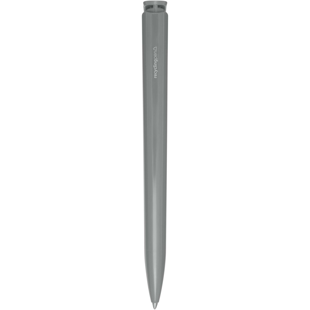 Golyóstoll, amelynek teste és klipsze újrahasznosított műanyagból készült, a hegy pedig rozsdamentes acélból. Fekete tollbetéttel. Íráshossz: 3000 méter. Hegyméret: 1,00 mm. Németországban készült. Emblémázás: Tamponnyomás