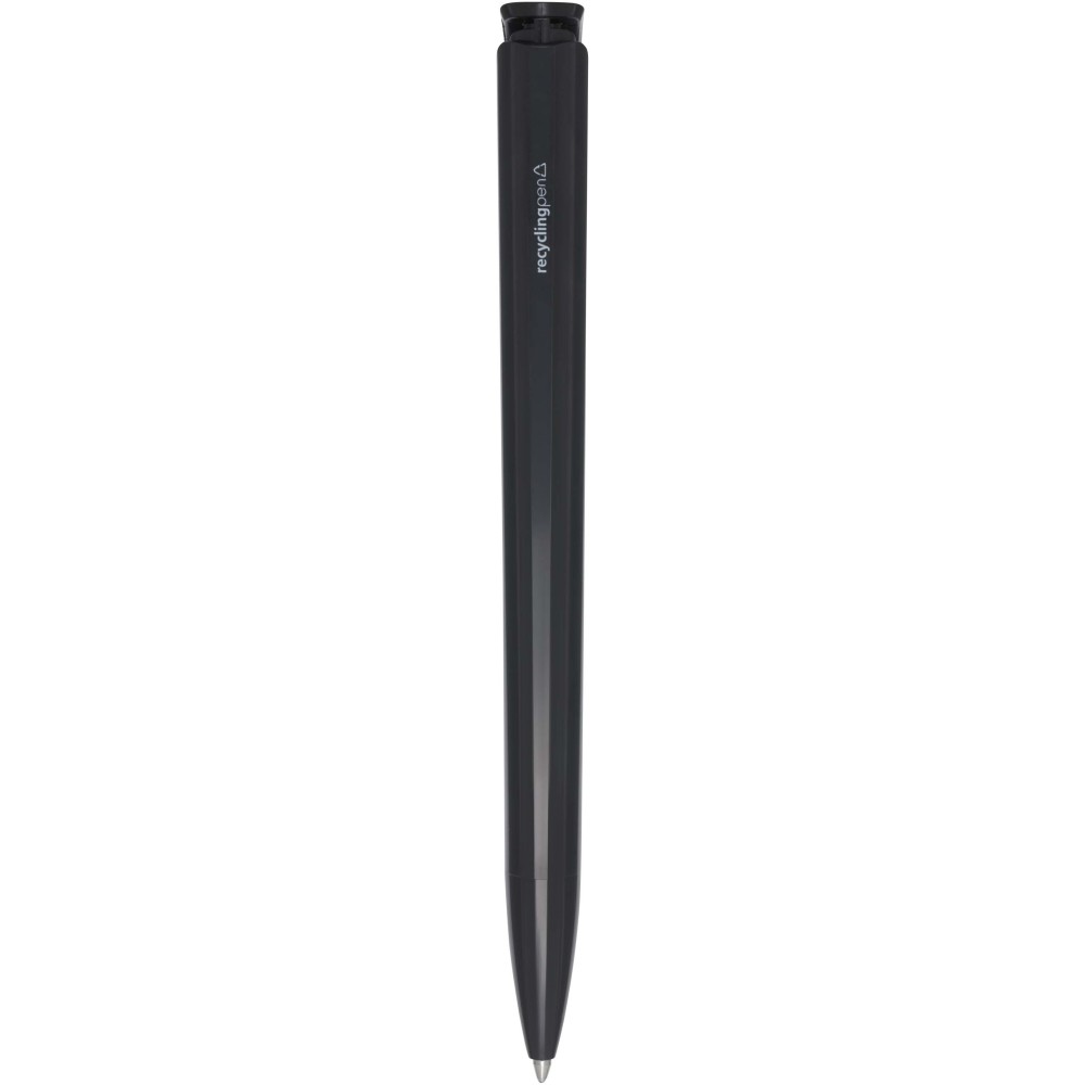 Golyóstoll, amelynek teste és klipsze újrahasznosított műanyagból készült, a hegy pedig rozsdamentes acélból. Fekete tollbetéttel. Íráshossz: 3000 méter. Hegyméret: 1,00 mm. Németországban készült. Emblémázás: Tamponnyomás