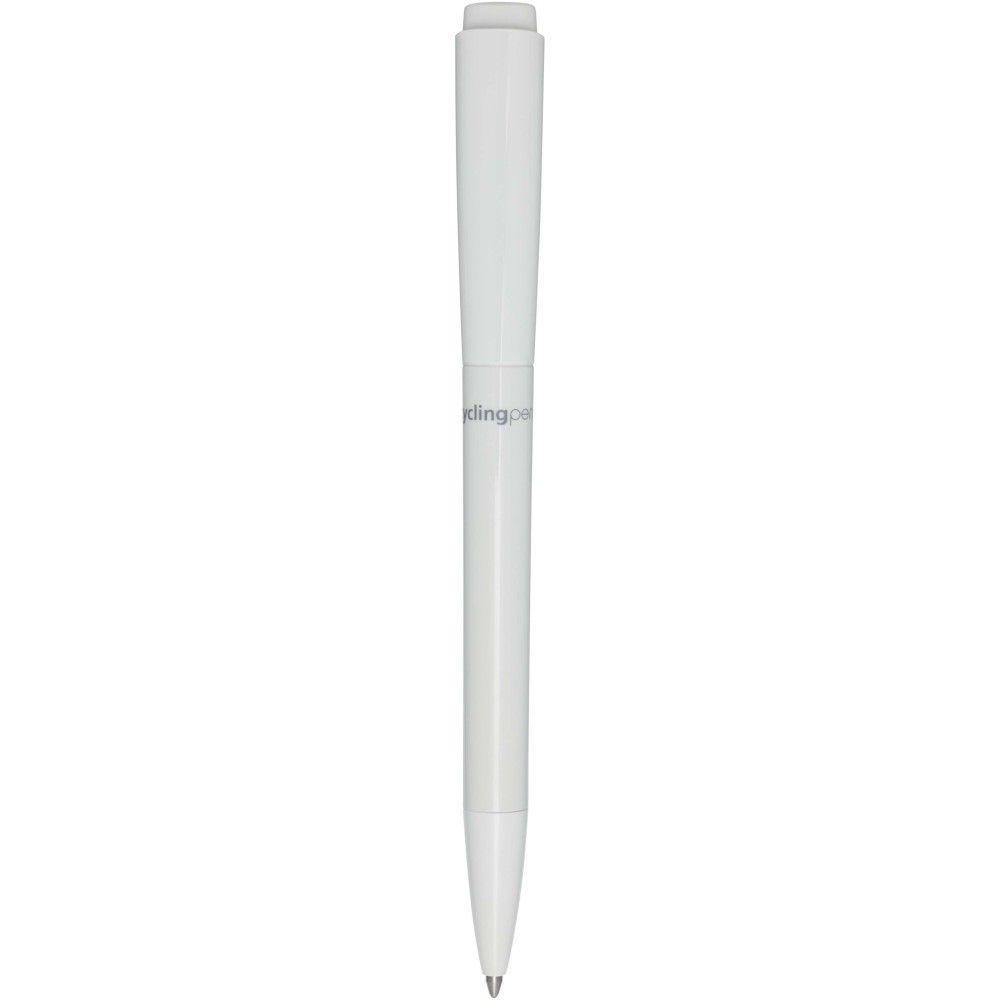 Golyóstoll, amelynek teste és klipsze újrahasznosított műanyagból, hegye pedig rozsdamentes acélból készült. Kék tollbetéttel. Íráshossz: 3000 méter. Hegyméret: 1,00 mm. Németországban készült. Emblémázás: Tamponnyomás