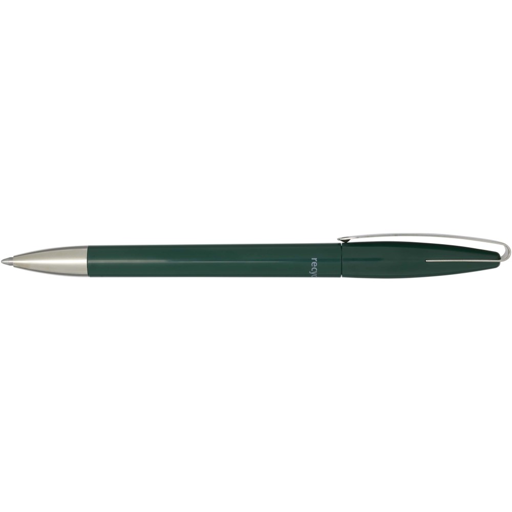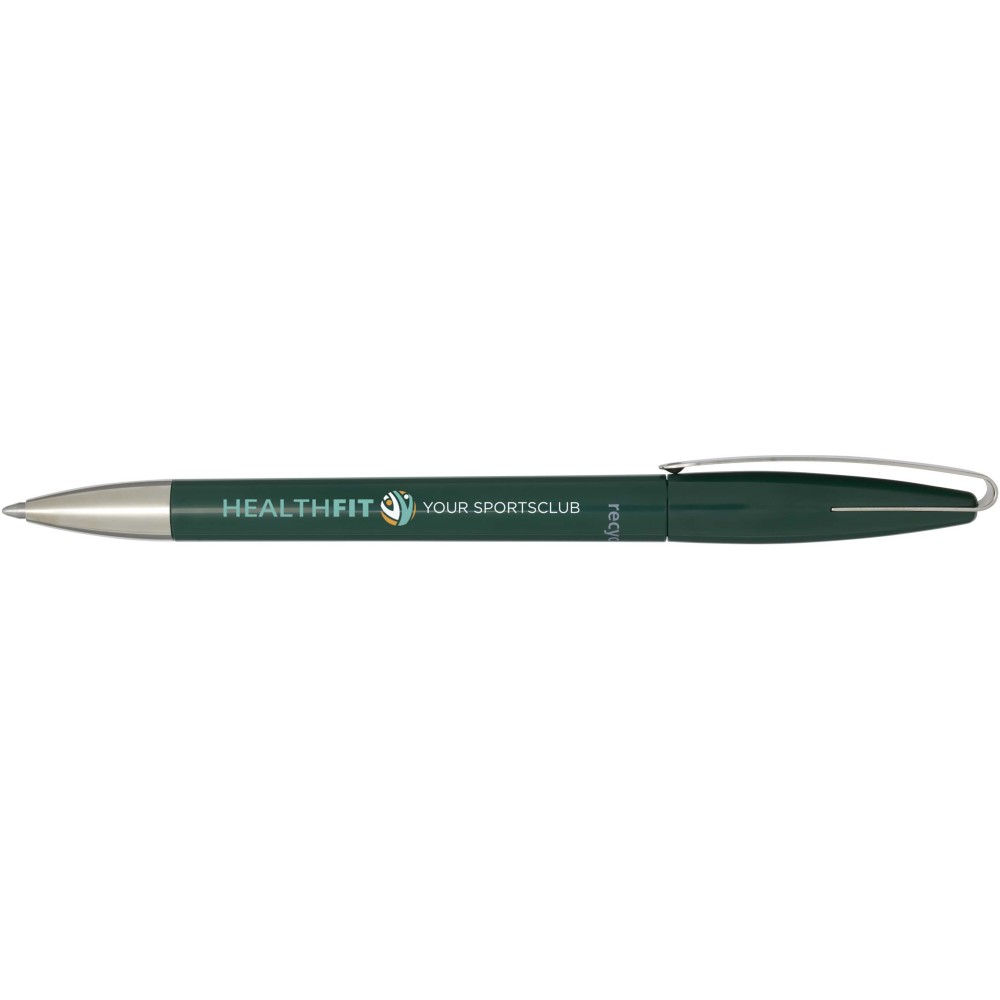 Golyóstoll, amelynek teste és klipsze újrahasznosított műanyagból, hegye pedig rozsdamentes acélból készült. Kék tollbetéttel. Íráshossz: 3000 méter. Hegyméret: 1,00 mm. Németországban készült. Emblémázás: Tamponnyomás