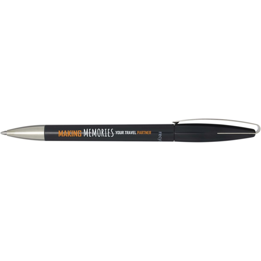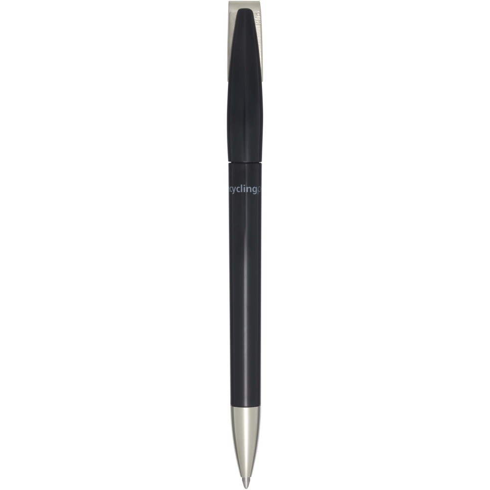 Golyóstoll, amelynek teste és klipsze újrahasznosított műanyagból, hegye pedig rozsdamentes acélból készült. Kék tollbetéttel. Íráshossz: 3000 méter. Hegyméret: 1,00 mm. Németországban készült. Emblémázás: Tamponnyomás