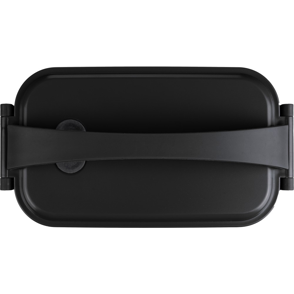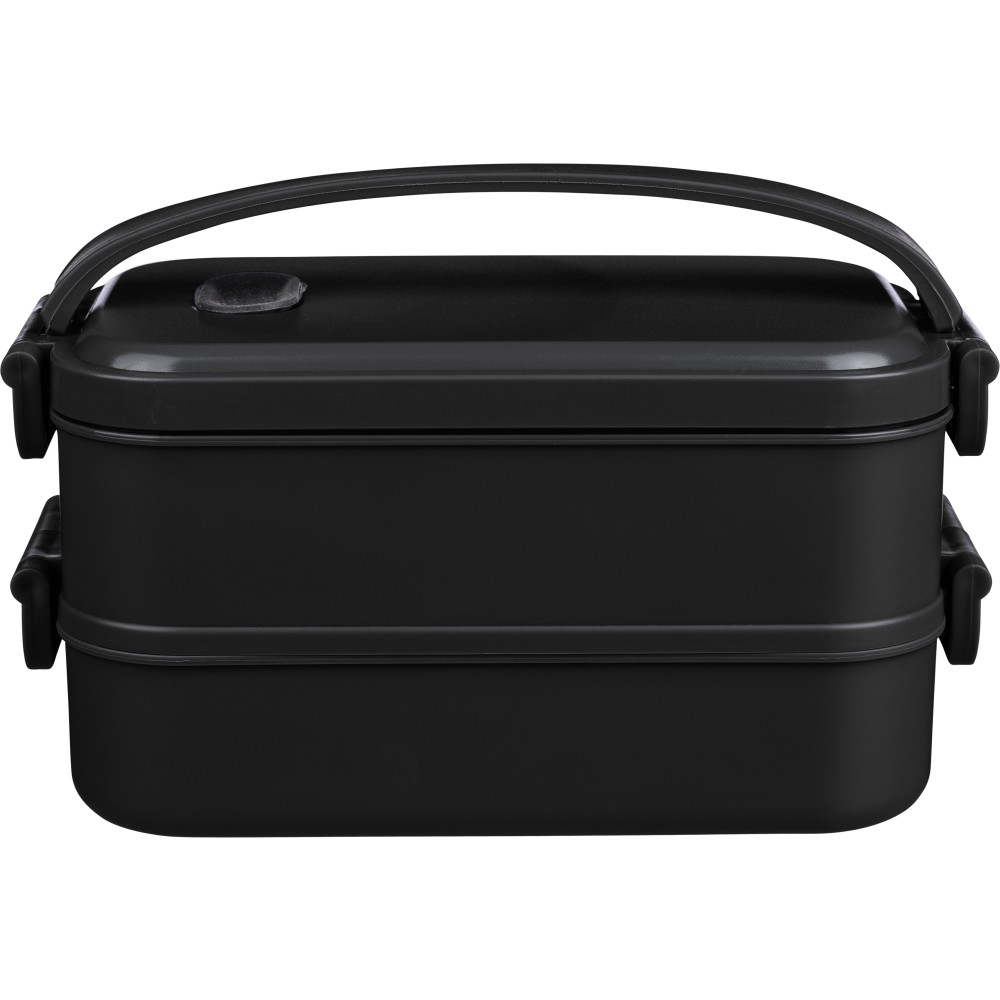 1600 ml-es PP ételtároló doboz 2 db, egyenként 800 ml-es résszel. Szilikon szeleppel a mikrohullámú sütőben történő melegítéshez, csatos záródással és szilikon hordozófüllel. Mosogatógépben tisztítható. Emblémázás: Tamponnyomás