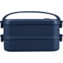 1600 ml-es PP ételtároló doboz 2 db, egyenként 800 ml-es résszel. Szilikon szeleppel a mikrohullámú sütőben történő melegítéshez, csatos záródással és szilikon hordozófüllel. Mosogatógépben tisztítható. Emblémázás: Tamponnyomás
