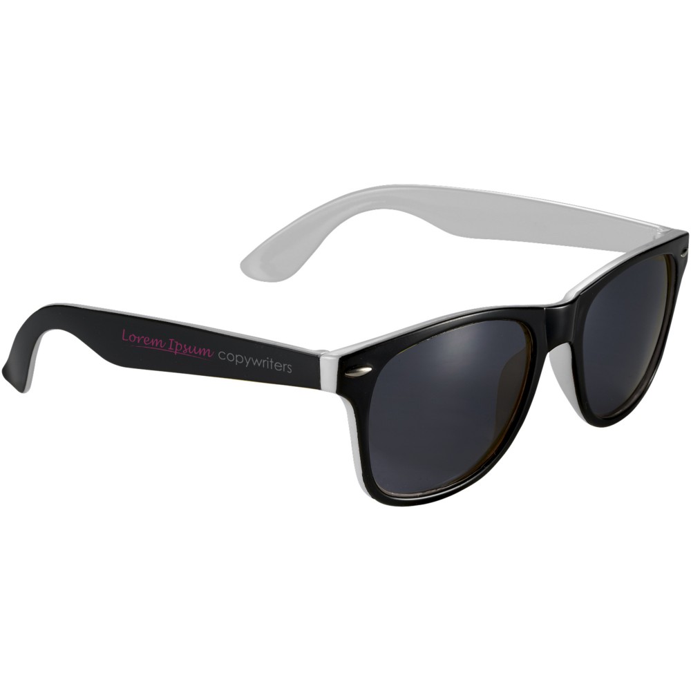 Retro stílusú kétszínű napszemüveg 3-as kategóriájú, UV400 védelemmel ellátott lencsékkel. A napszemüveg megfelel az EN ISO 12312-1 szabványnak. Emblémázás: Tamponnyomás