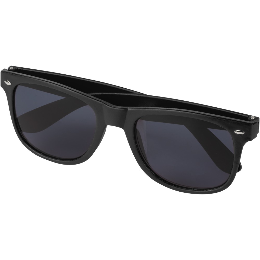 Ez a fenntartható, retro dizájnú napszemüveg ideális promóciós ajándék nyári fesztiválokon, rendezvényeken vagy más napsütéses szabadtéri tevékenységek során. A napszemüveg könnyű és kényelmes viselet, és újrahasznosított műanyagból készült a fenntarthatóság érdekében. Megfelel az EN ISO 12312-1 szabványnak, és UV400-as lencsékkel rendelkezik, amelyek besorolása a 3. kategóriába tartozik, így tökéletes választás az erős napfény elleni védelemhez. Emblémázás: Tamponnyomás