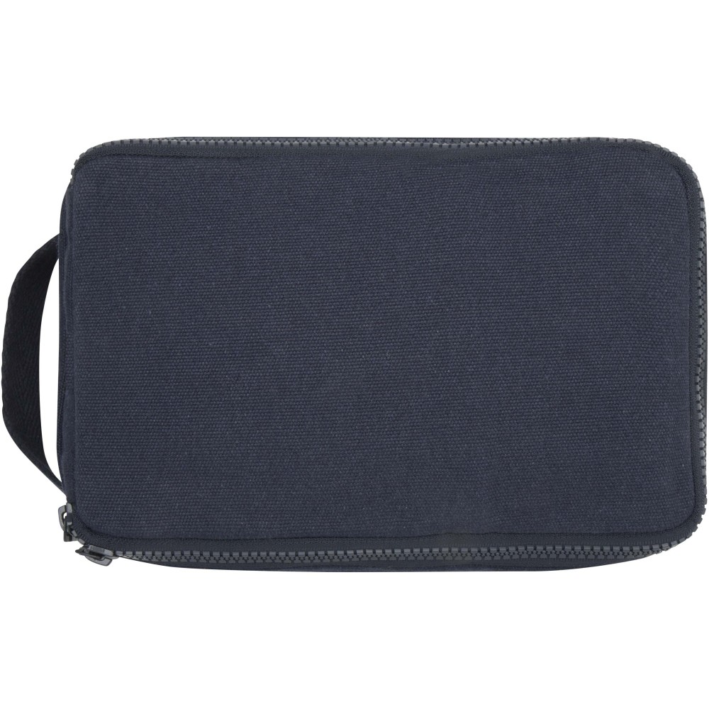 Piperetáska 500 g/m2 újrahasznosított pamutból és poliészterből, tágas fő rekesszel, biztonságos cipzáras záródással és több belső zsebbel, amely ideális piperecikkek tárolására. Sokoldalú kialakításának köszönhetően kisebb tárgyak - például zoknik vagy töltők - rendszerezésére is kiváló, így a csomagok rendezetten tarthatók. A táska Cyclo újrahasznosított szálakat tartalmaz, amelyek előválogatott hulladékból készülnek, és ennek megfelelően alakul a fonal színe is. Ezek a szálak nemcsak a primer nyersanyagok iránti igényt csökkentik, hanem elköteleződést is mutatnak a körforgásos szemlélet iránt, elősegítve a hulladékcsökkentést és a zárt rendszerű gyártást. Minden táskához tartozik egy Aware nyomkövető is, amelynek QR-kódja révén nyomon követhető a termék eredete és útja, ezáltal fokozva az ellátási lánc átláthatóságát, és erősebb kapcsolatot teremtve a felhasználó és a termék gyártási folyamata között. Emblémázás: Szitanyomás