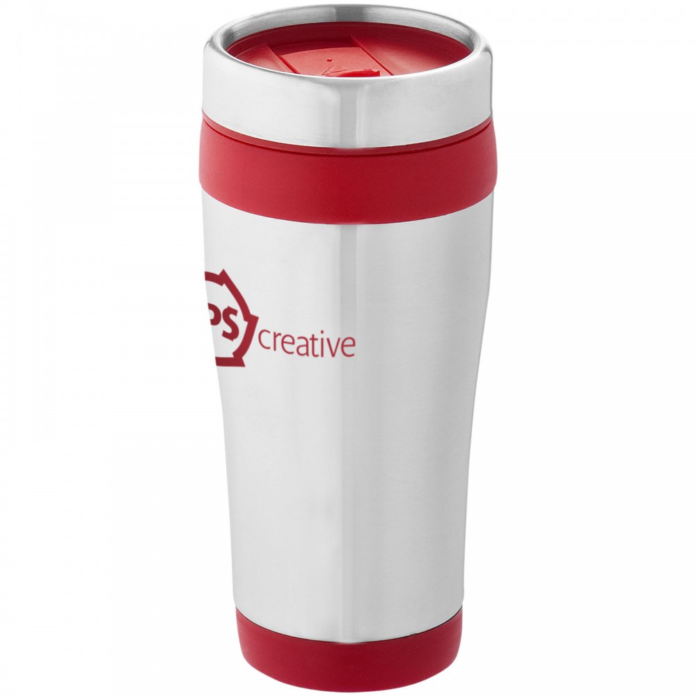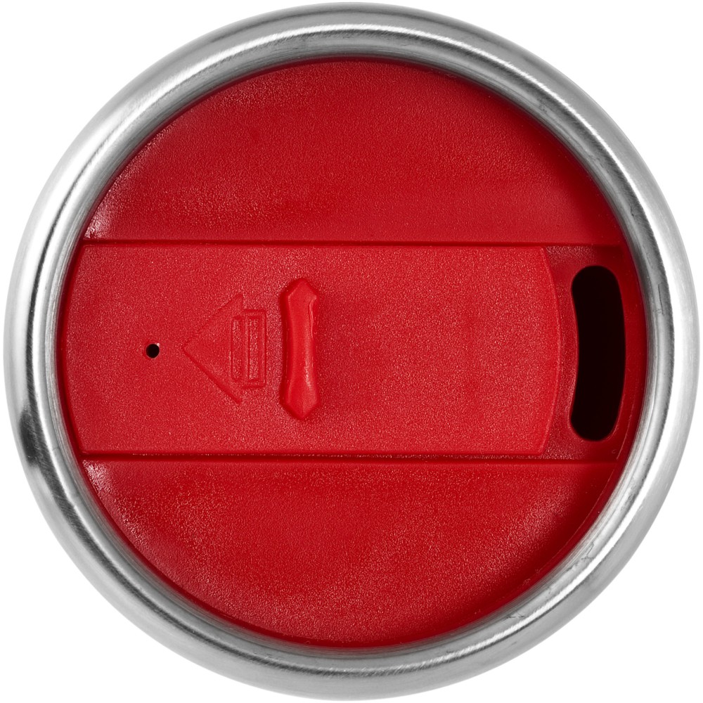 Duplafalú bögre rácsavarható tetővel és elcsúsztatható nyílással. A rozsdamentes acél és a műanyag kombinációja rendkívül erőssé, korrózióállóvá és könnyen tisztíthatóvá teszi a poharat. Nem szivárgásmentes. Szénsavas italokkal is használható. Mosogatógépben nem mosható és mikrohullámú sütőben történő melegítésre nem alkalmas. Űrtartalom: 470 ml. Emblémázás: Gravírozás, Tamponnyomás