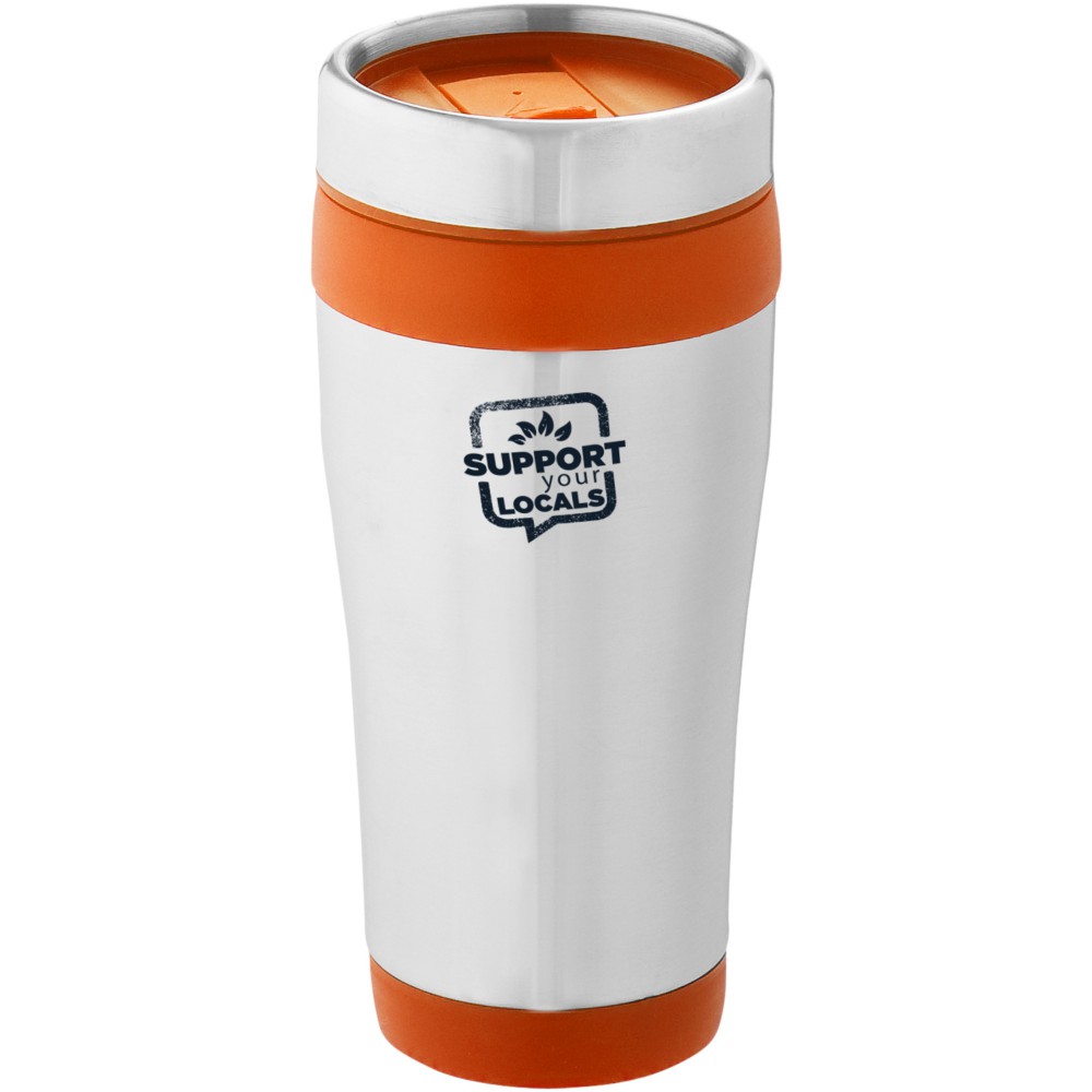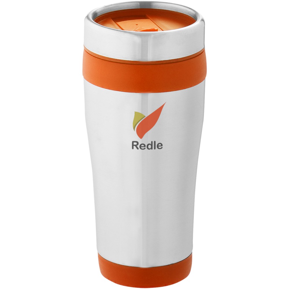 Duplafalú bögre rácsavarható tetővel és elcsúsztatható nyílással. A rozsdamentes acél és a műanyag kombinációja rendkívül erőssé, korrózióállóvá és könnyen tisztíthatóvá teszi a poharat. Nem szivárgásmentes. Szénsavas italokkal is használható. Mosogatógépben nem mosható és mikrohullámú sütőben történő melegítésre nem alkalmas. Űrtartalom: 470 ml. Emblémázás: Gravírozás, Tamponnyomás