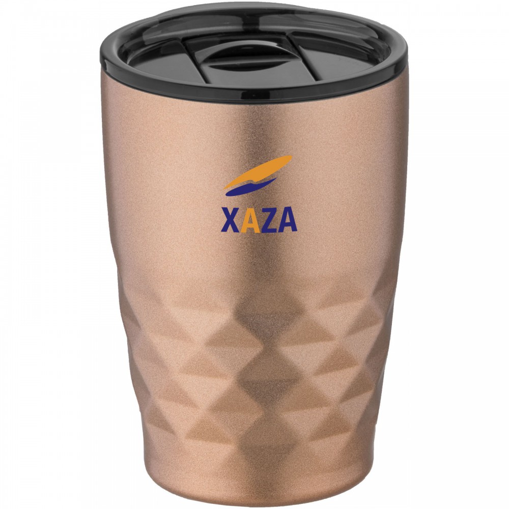Duplafalú vákumos kialakítás réz szigeteléssel, ami biztosítja a 8 órás melegentartást és a 24 órás hidegentartást. Kialakításának köszönhetően külső párásodás nem fordul elő. A nyomógombos és tolórekeszes fedél kialakítása miatt könnyen fogyasztható belőle bármilyen ital. Könnyű újtatöltést és a kiöntés is biztosított a teljes nyithatóság. 350 ml űrtartalom. Nem szivárgásmentes. Szénsavas italokkal nem használható. Mosogatógépben nem mosható és mikrohullámú sütőben történő melegítésre nem alkalmas. Csomagolása Avenue ajándékdoboz. Emblémázás: Gravírozás, Körszita, Tamponnyomás