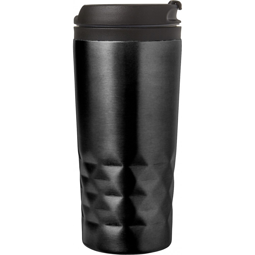 Duplafalú fedeles pohár. 300 ml. Rozsdamentes acél és BPA-mentes műanyag. Nem szivárgásmentes és nem mosogatógépálló termék. Emblémázás: Gravírozás, Körszita, Tamponnyomás