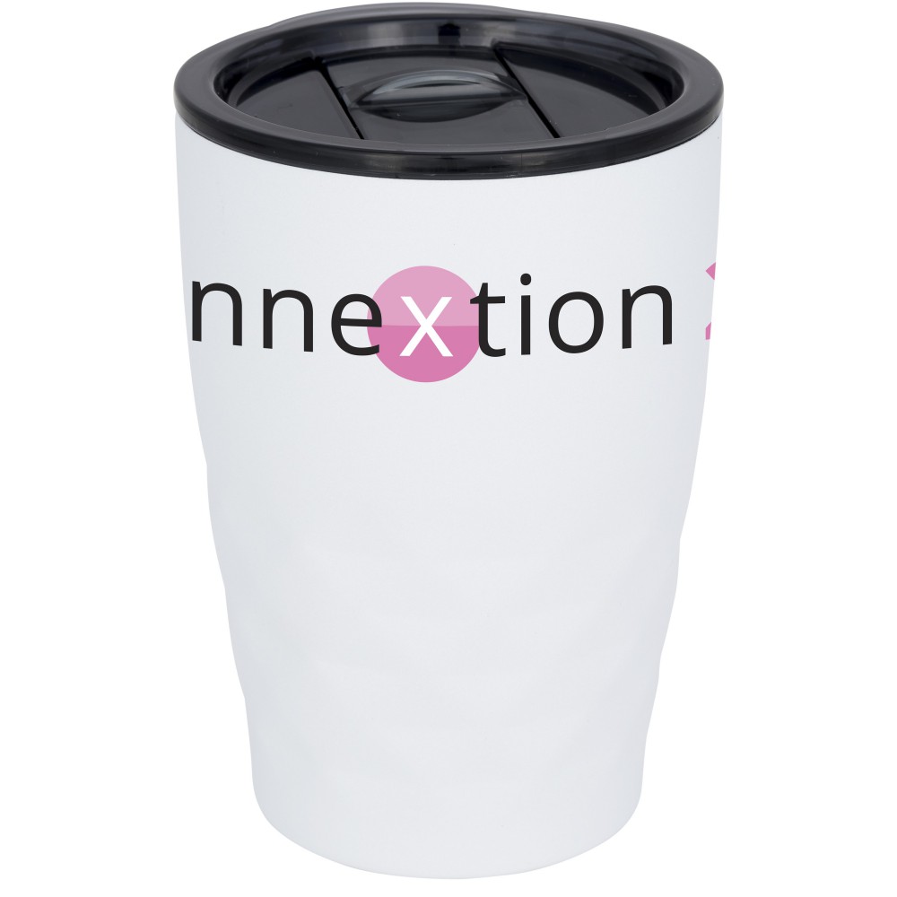 Duplafalú vákumos kialakítás réz szigeteléssel, ami biztosítja a 8 órás melegentartást és a 24 órás hidegentartást. Kialakításának köszönhetően külső párásodás nem fordul elő. A nyomógombos és tolórekeszes fedél kialakítása miatt könnyen fogyasztható belőle bármilyen ital. Könnyű újtatöltést és a kiöntés is biztosított a teljes nyithatóság. 350 ml űrtartalom. Nem szivárgásmentes. Szénsavas italokkal nem használható. Mosogatógépben nem mosható és mikrohullámú sütőben történő melegítésre nem alkalmas. Csomagolása Avenue ajándékdoboz. Emblémázás: Gravírozás, Körszita, Tamponnyomás