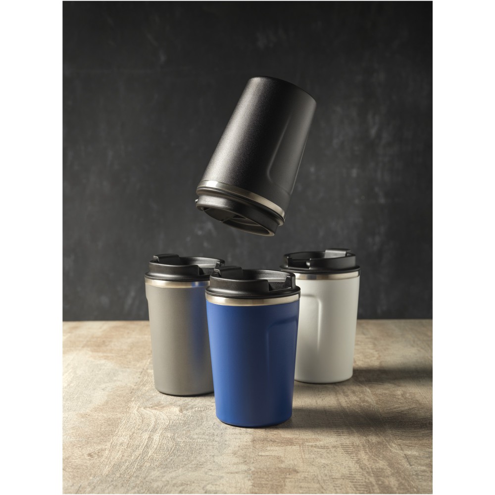 Duplafalú, vákuumos, réz szigetelésű pohár. Hidegtartó képesség 24 óra, melegtartó képesség 8 óra. A duplafalas kialakításnak köszönhetően nincs párakicsapódás. Szivárgásmentes. Szénsavas italokkal nem használható. Mosogatógépben nem mosható és mikrohullámú sütőben történő melegítésre nem alkalmas. Űrtartalom: 360 ml. Csomagolása Avenue díszdoboz. Rozsdamentes acél. Emblémázás: Gravírozás