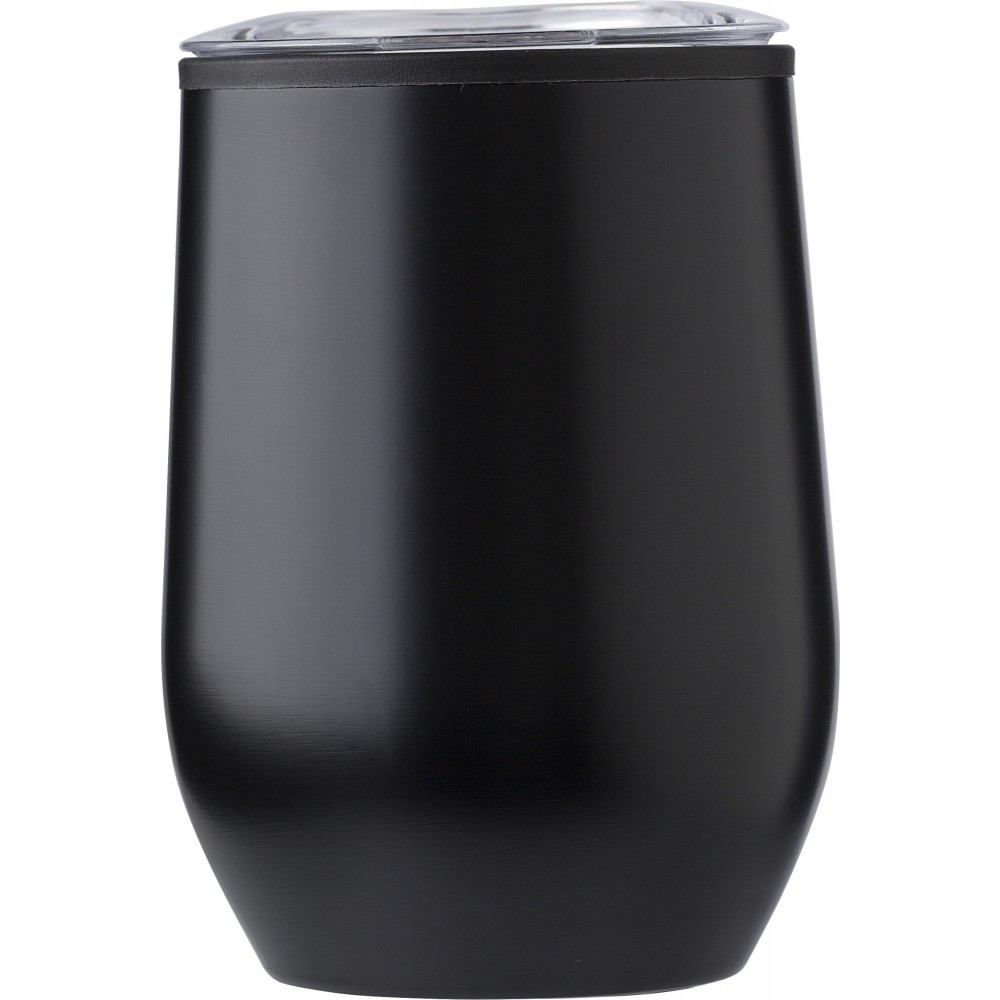 Rozsdamentes acél utazópohár PP belsővel és PS tetővel. A bögre matt felületű. Barna kartondobozba egyedileg csomagolva. Űrtartalom: 300 ml. Emblémázás: Gravírozás, Tamponnyomás